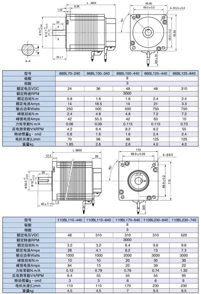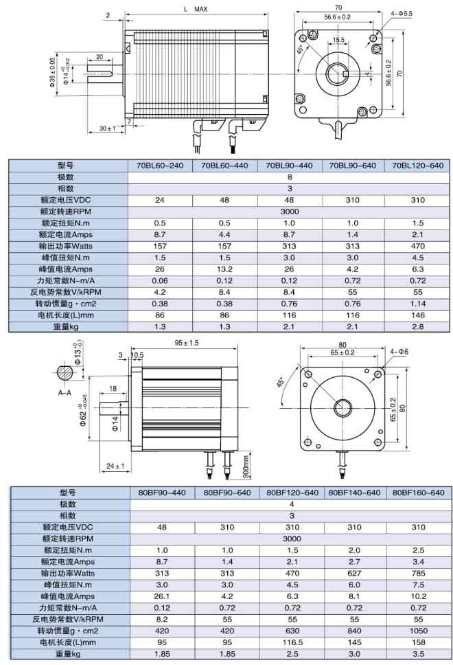 無(wú)刷電機(jī)采用了4極和8極轉(zhuǎn)子設(shè)計(jì),機(jī)型號(hào)有42、5760、70、80、86110;0.1Nm6Nm的連續(xù)轉(zhuǎn)矩;高性能釹鐵硼磁鋼提供3倍以上的峰值扭矩。