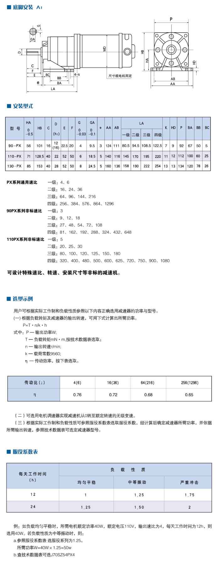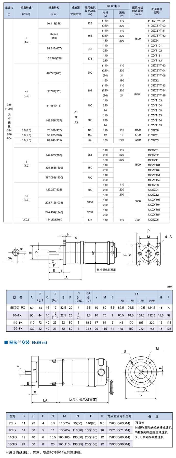 PX系列也可直連蝸輪減速器、擺線針輪減速器,組成不同速比或大速比的減速機。